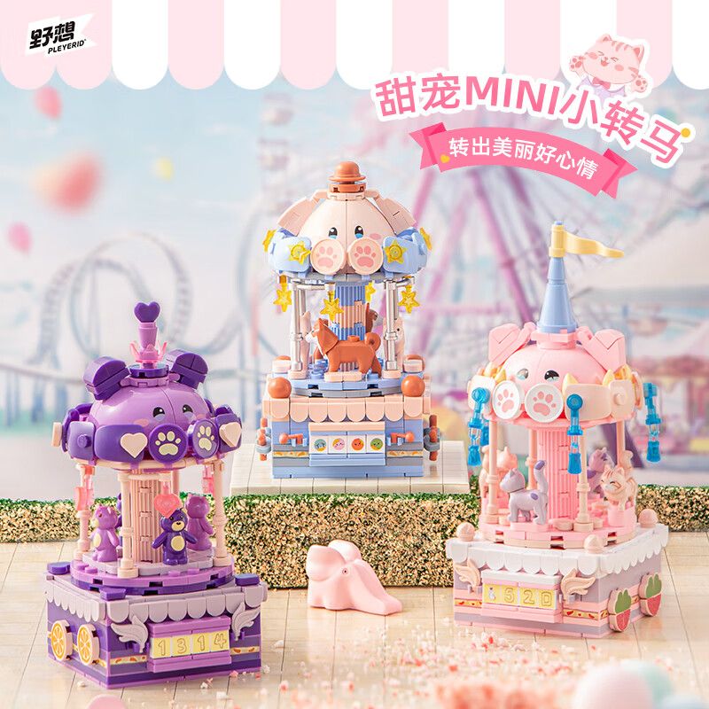 1. Ai nên chơi đồ chơi xếp hình PLEYERID M38-P8027 P8027 8027 M38P8027 38-P8027 Đồ trang trí máy tính để bàn băng chuyền thú cưng MINI Sweet Carousel 3 loại Mèo dễ thương Xiong Beibei Muốn chó?