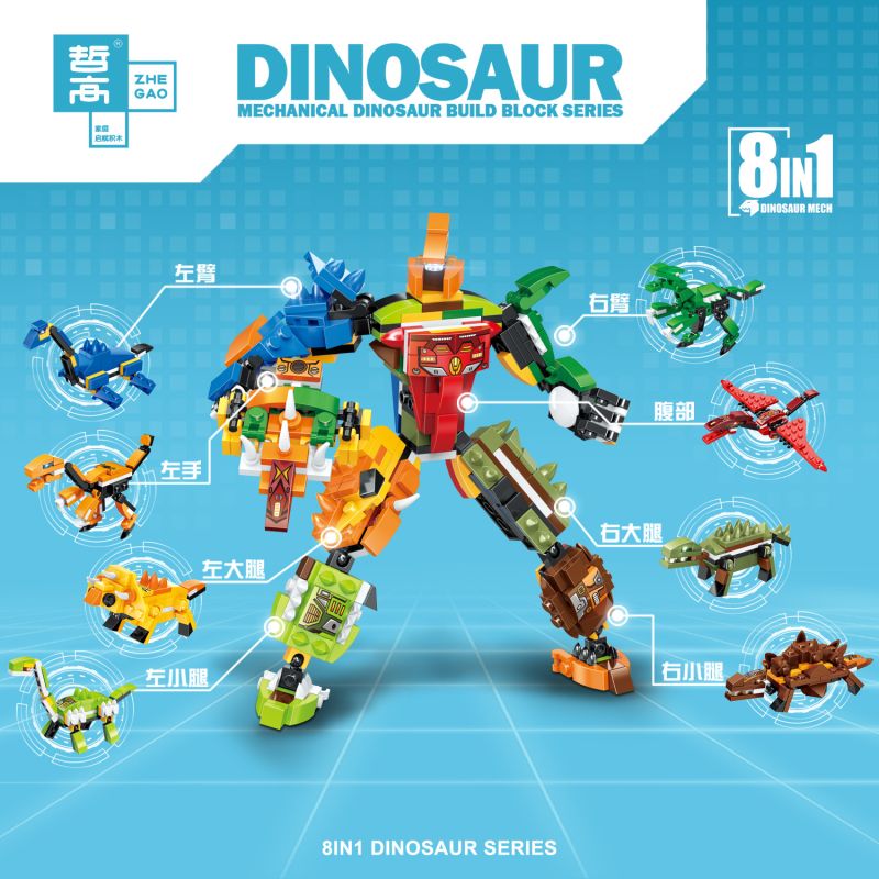 ZHEGAO QL1724 1724 KHỦNG LONG TÁM TRONG MỘT MECHA bộ đồ chơi xếp lắp ráp ghép mô hình