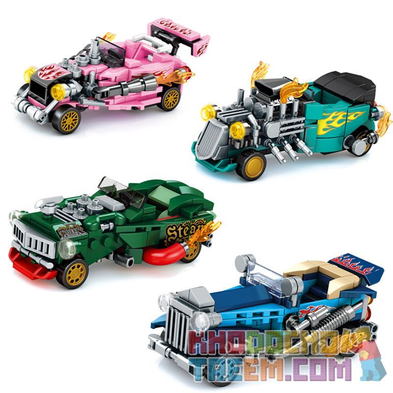 SEMBO 607205A 607205B 607205C 607205D thuộc thể loại Xếp hình Racers Đua Tốc Độ hồng, màu xanh lá, màu xanh da trời.