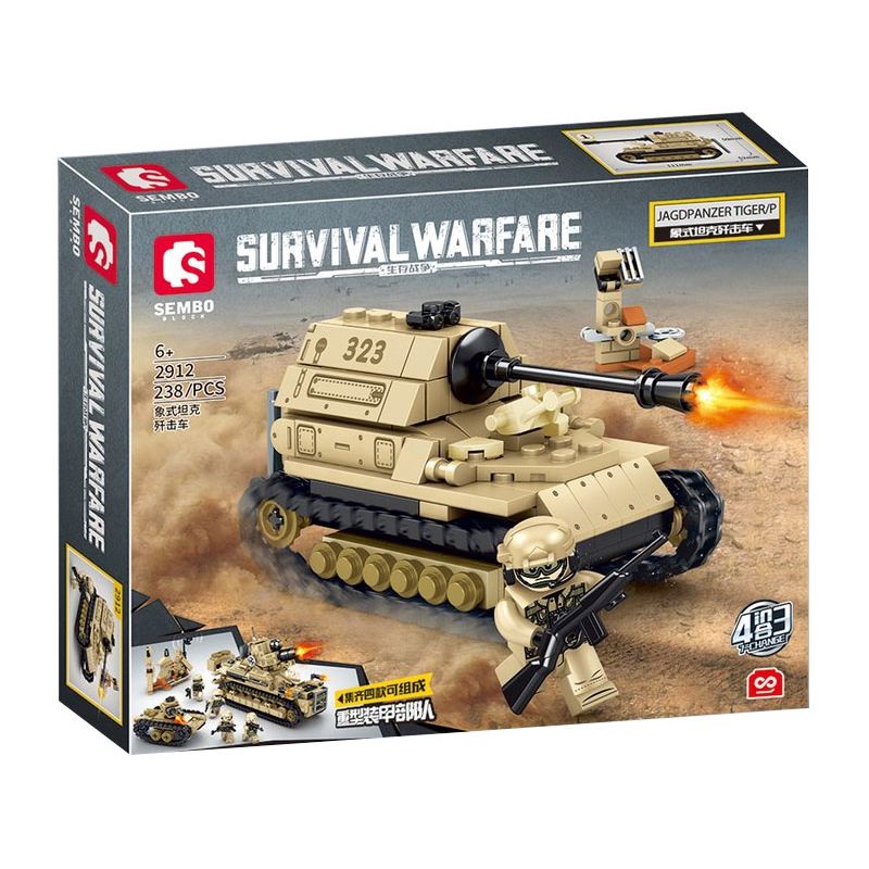 SEMBO 2912 2913 2914 2915 Survival Warfare thuộc thể loại Xếp hình Military Army Quân Sự Bộ Đội Pháo diệt tăng voi, Xe tăng hạng nặng Tiger, Pháo chống tăng hạng nặng Jagdtiger, Xe tăng hạng nặng King Tiger.