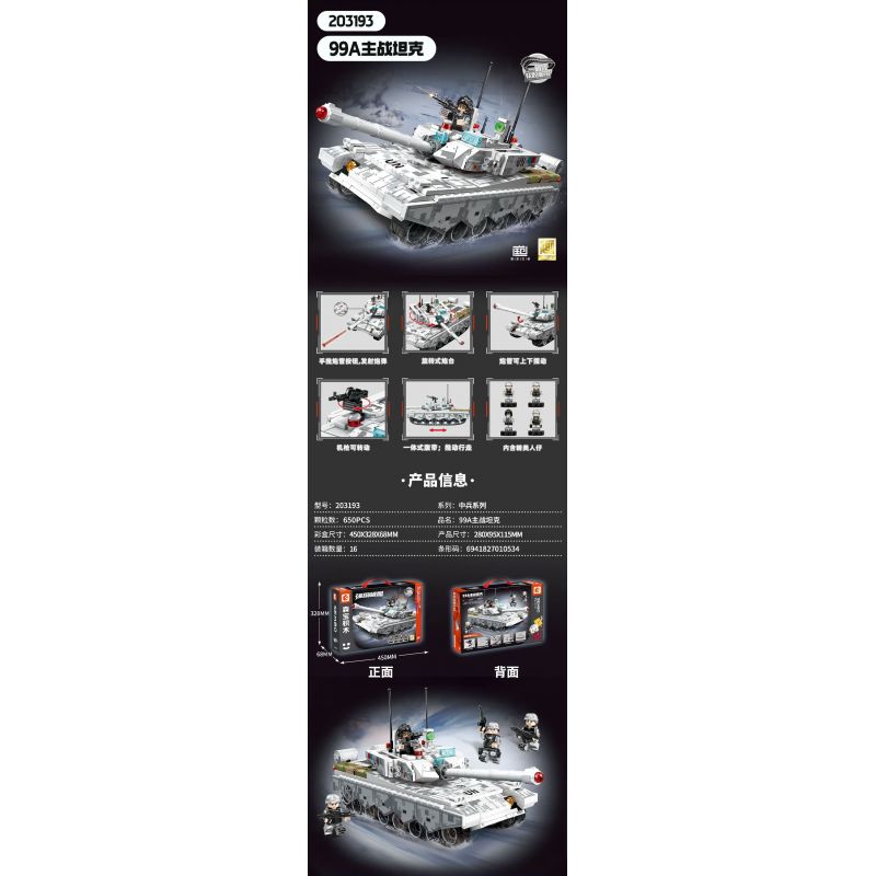 SEMBO 203193 ZHONGBING 99A BỂ CHIẾN ĐẤU CHÍNH bộ đồ chơi xếp lắp ráp ghép mô hình Military Army Quân Sự Bộ Đội 650 khối