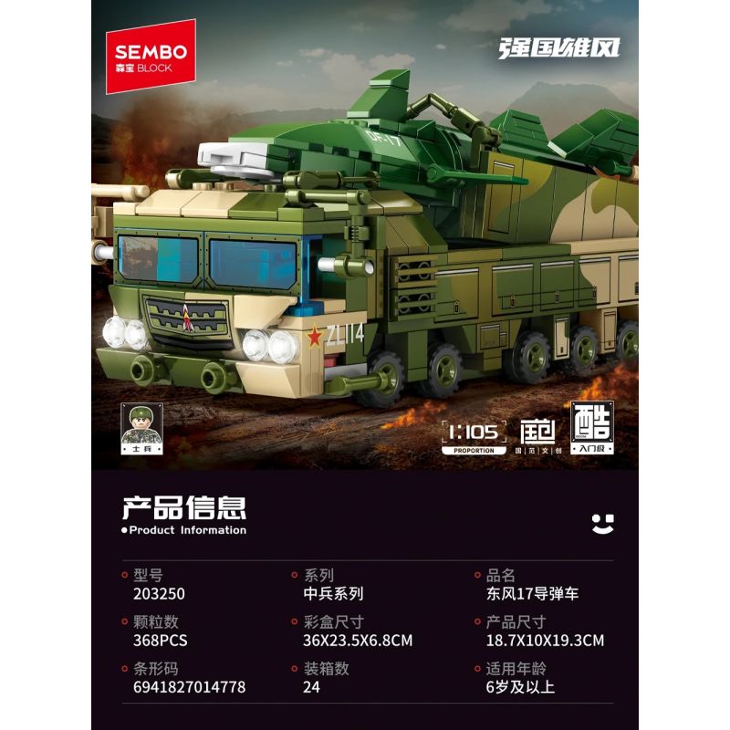 SEMBO 203250 DONGFENG 17 MISSILE XE 105 tỷ lệ 1:105 bộ đồ chơi xếp lắp ráp ghép mô hình Military Army Quân Sự Bộ Đội 368 khối