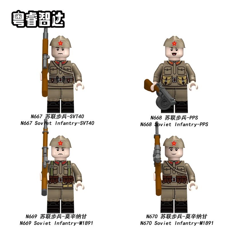 GUANGDONG RUIZHIDA N667 N668 N669 N670 NHÂN VẬT BỘ BINH LIÊN XÔ TRONG THẾ CHIẾN THỨ HAI 4 LOẠI bộ đồ chơi xếp lắp ráp ghép mô hình Military Army Quân Sự Bộ Đội